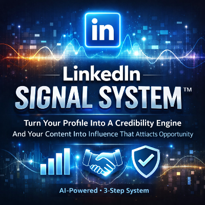 Inside this Signal System, you’ll find guided prompts that act like your personal strategist — helping you decode your current credibility, compose high-authority posts, and generate a repeating content rhythm that compounds your influence.